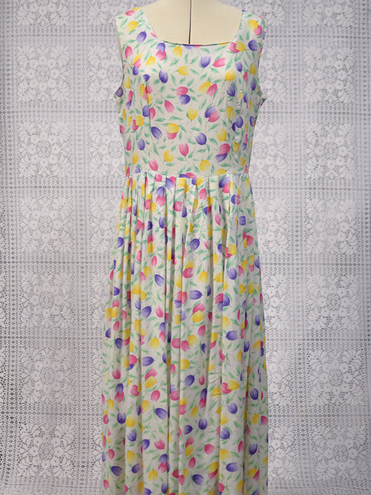 1990s St Michael colourful tulip print button through sleeveless midi dress