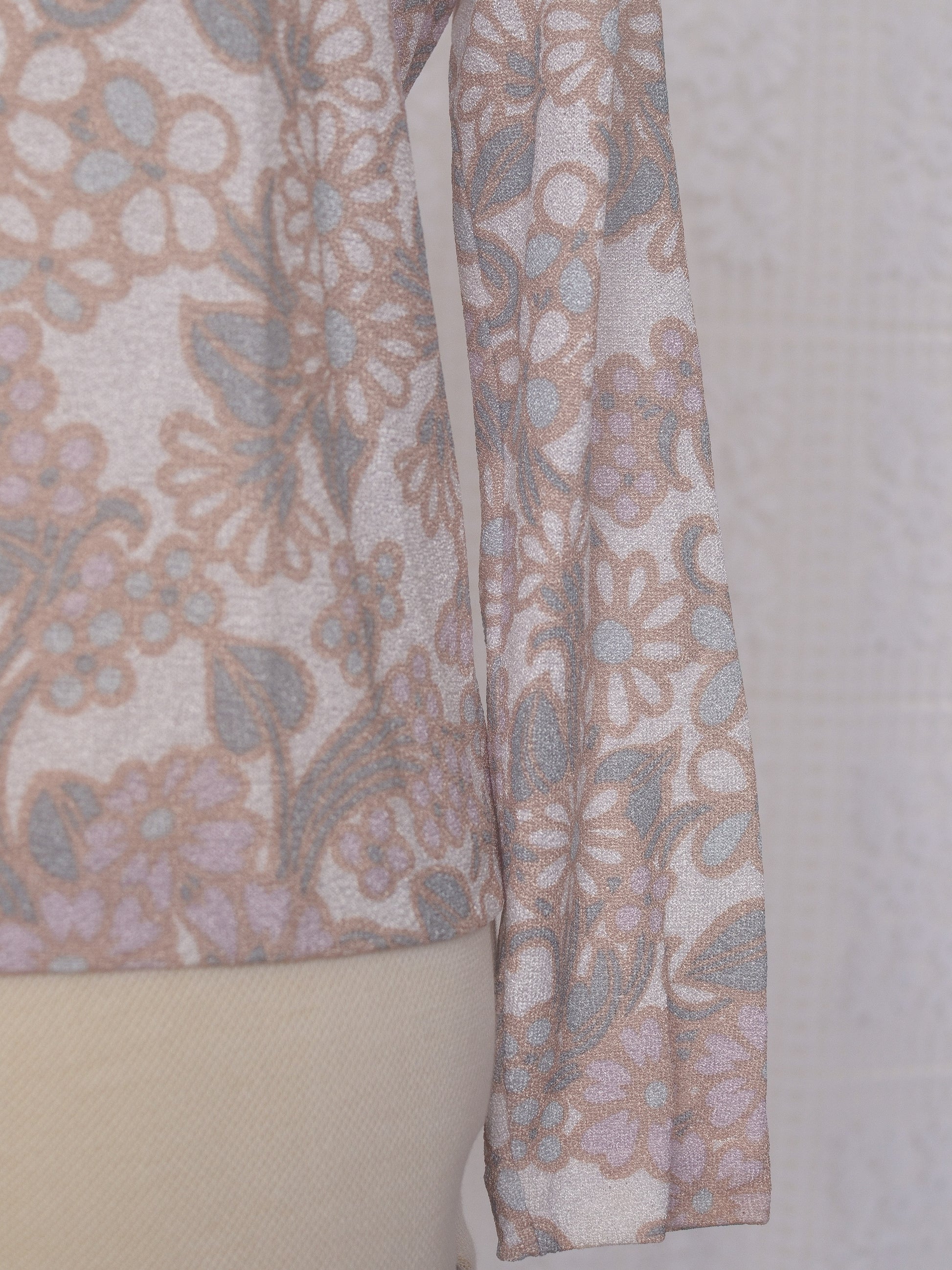 1970s cream, brown and pink floral turtleneck long sleeve jumper