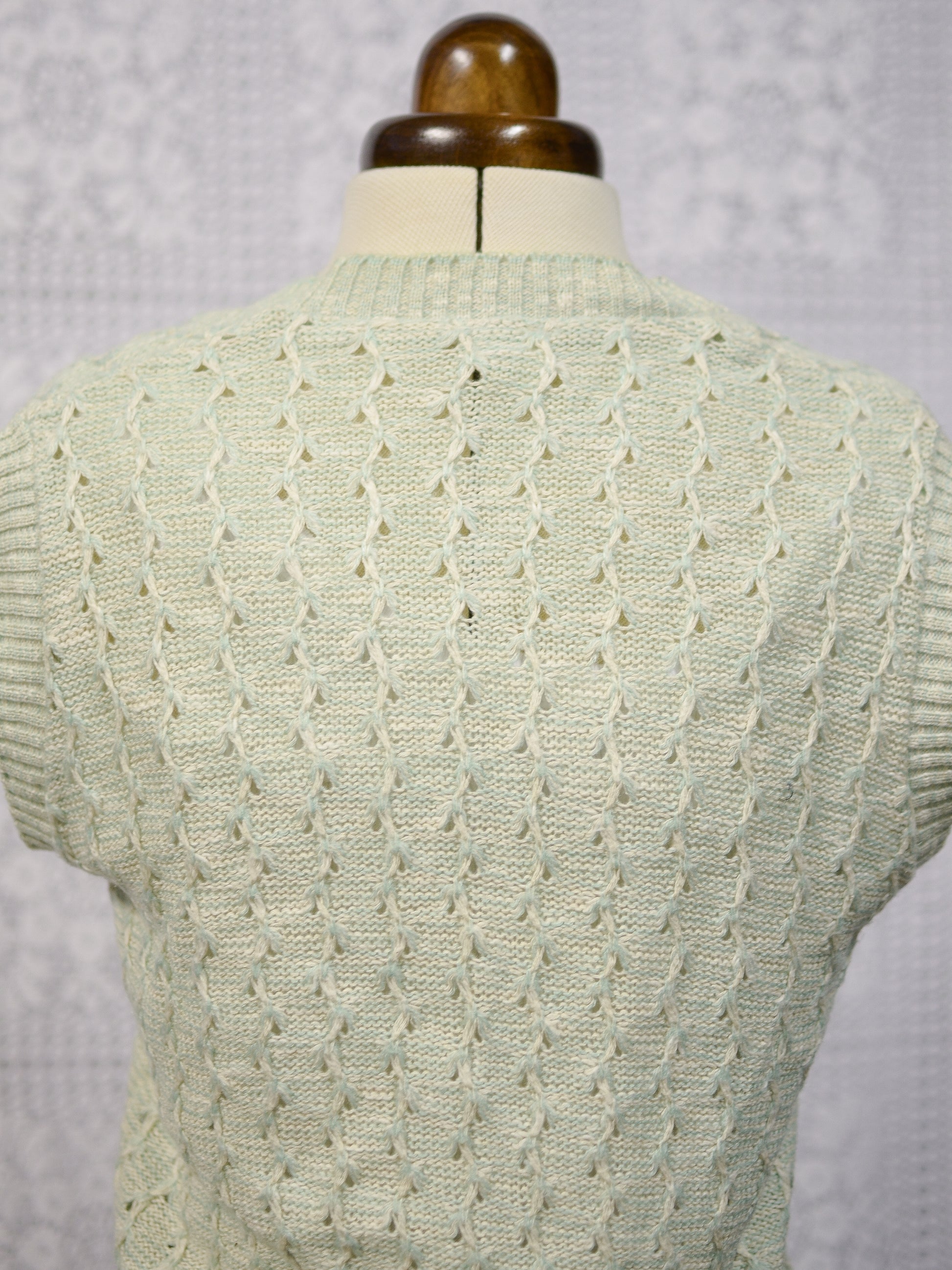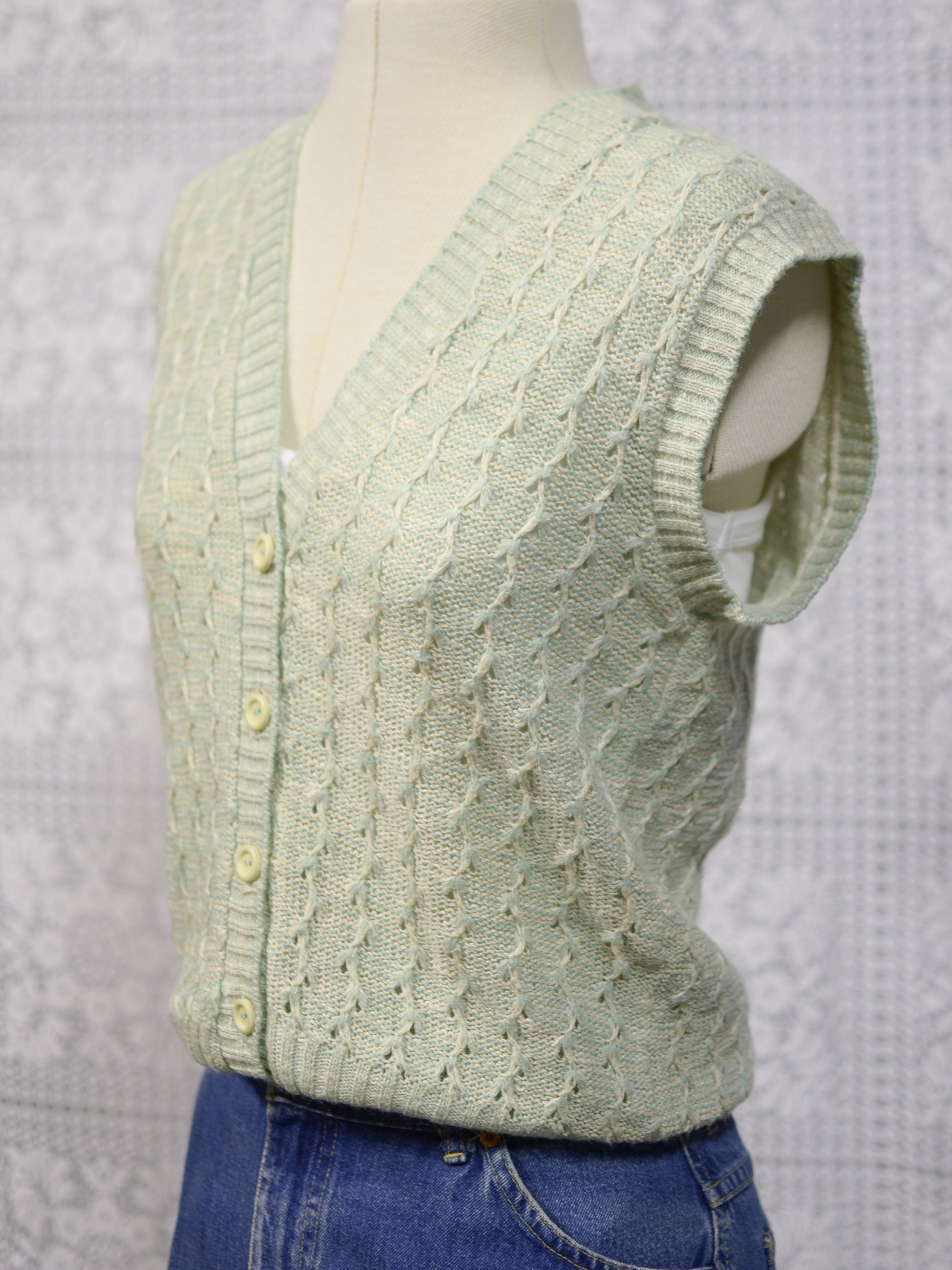1970s mint green and cream button-up vest sleeveless cardigan tank top