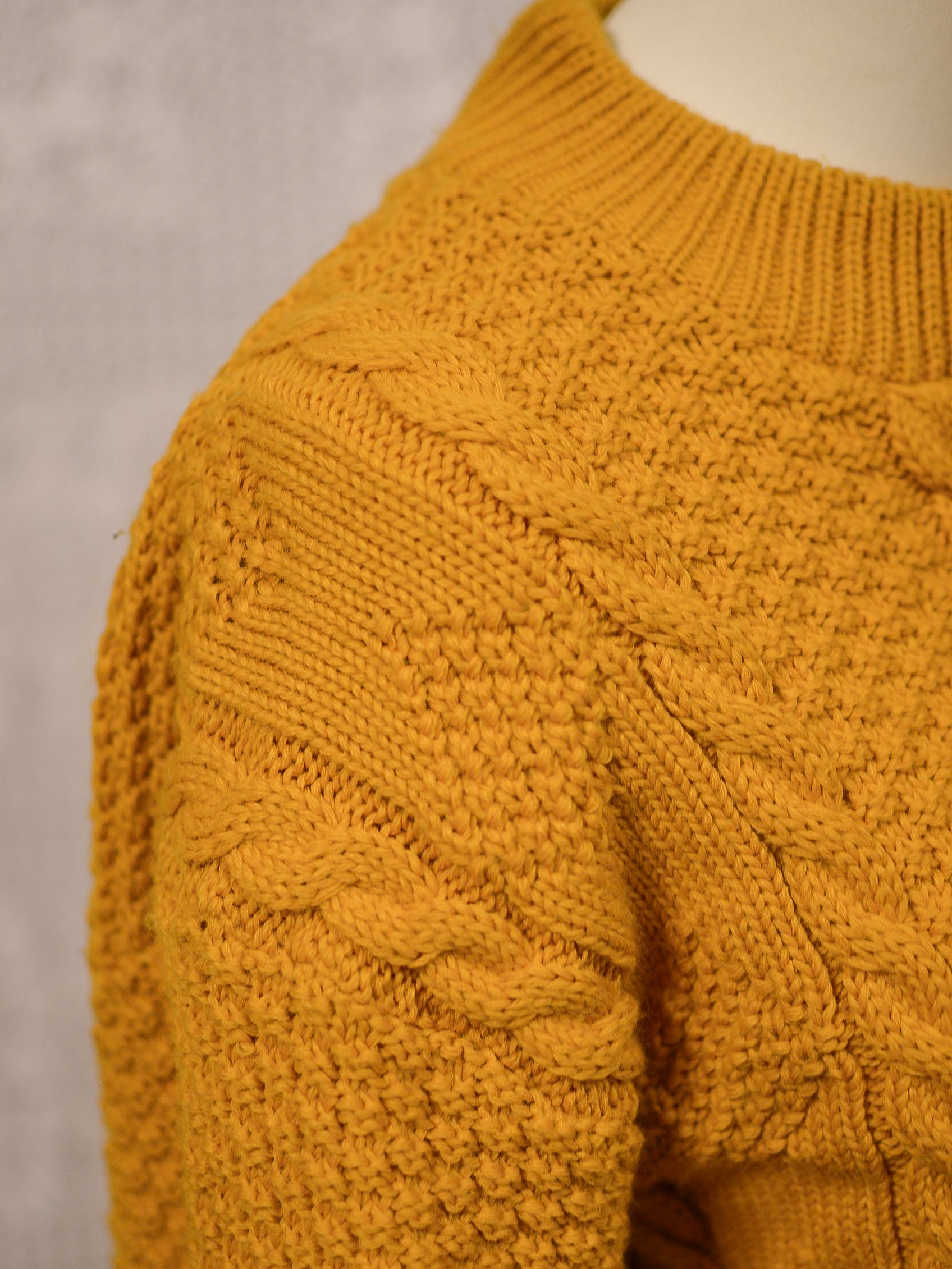 Add a bit of colour to autumn and winter with this stunning mustard/yolk yellow colour cable knit jumper.