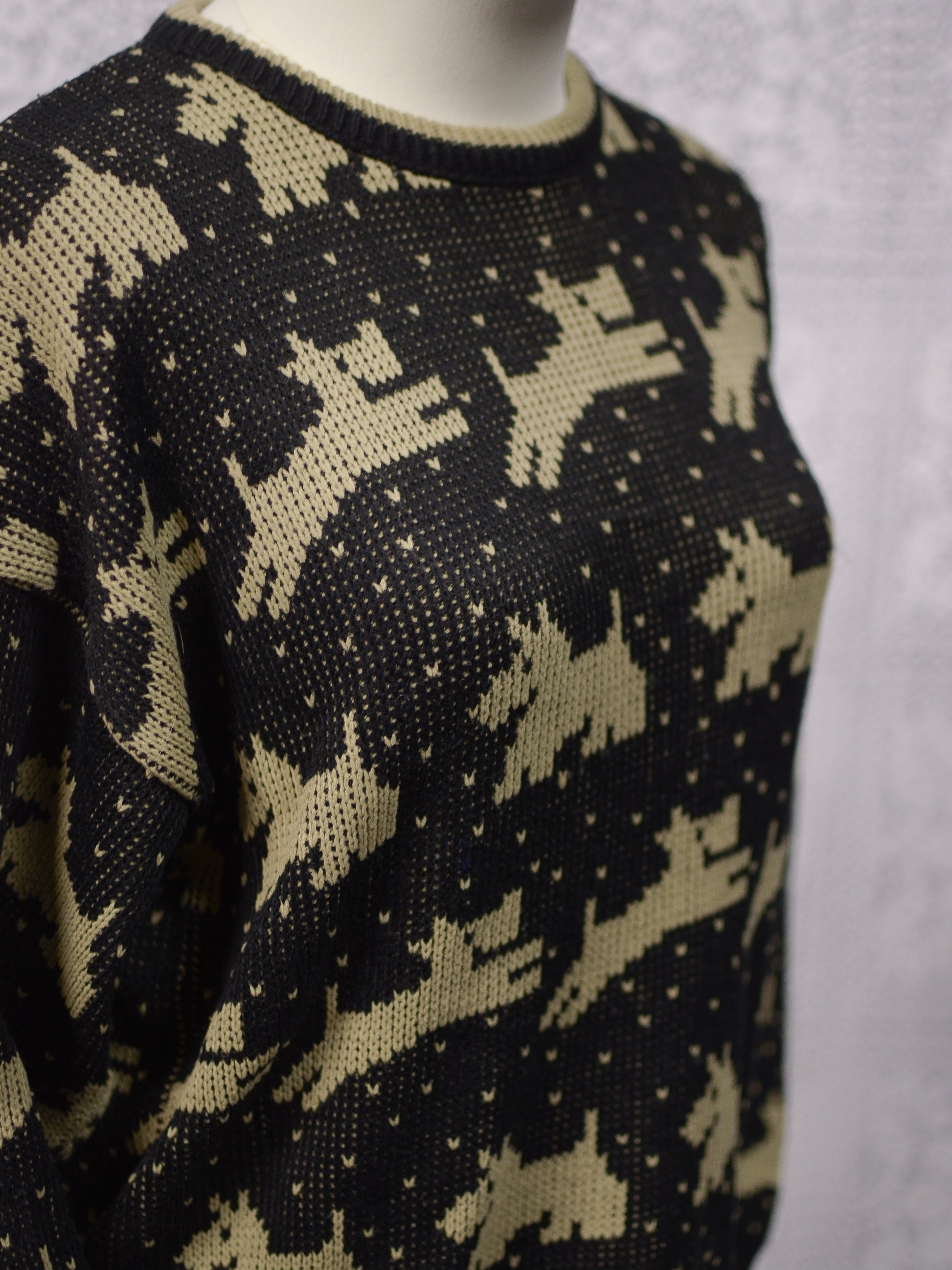 1980s black and brown scottie dog pattern novelty jumper