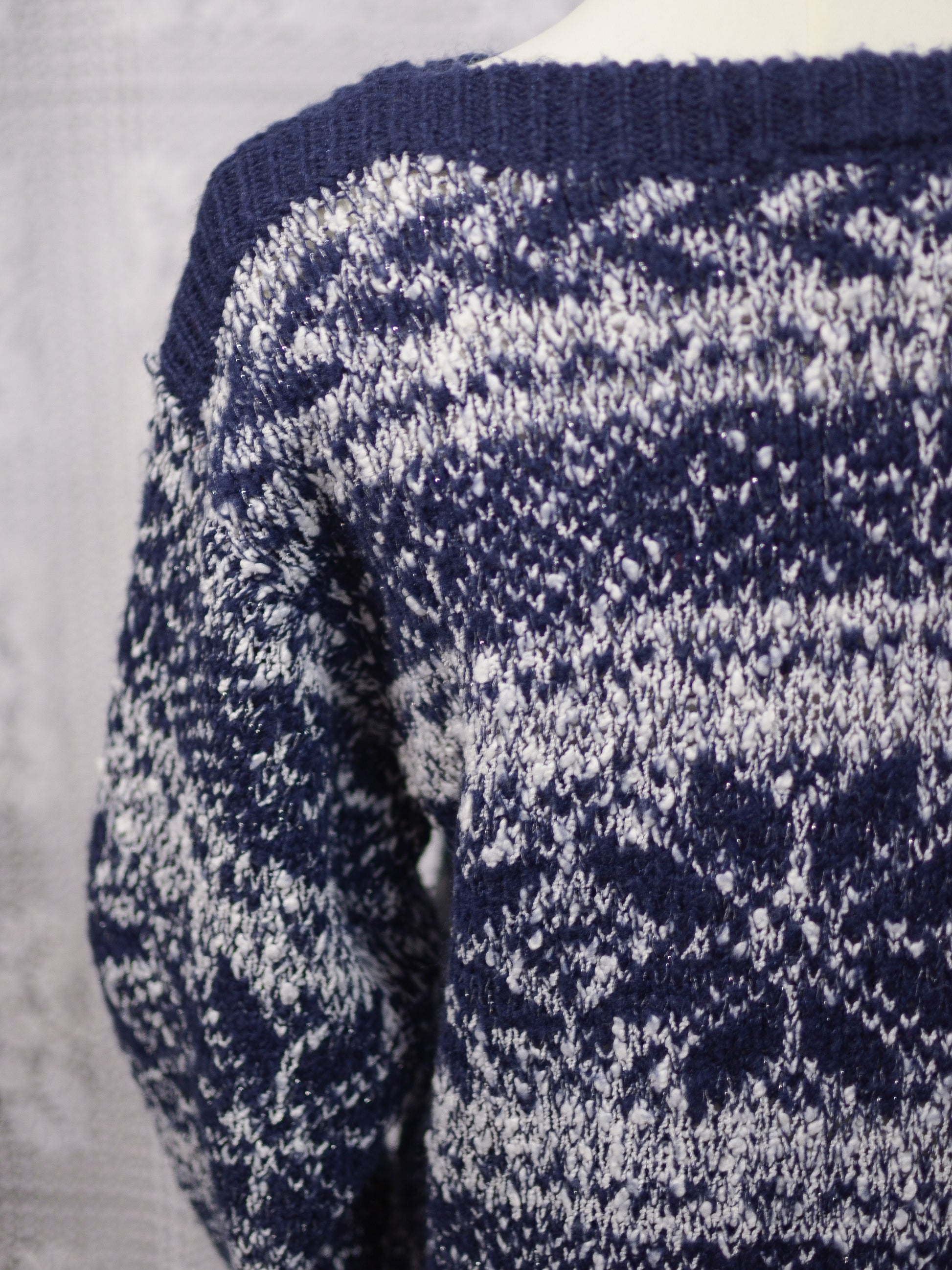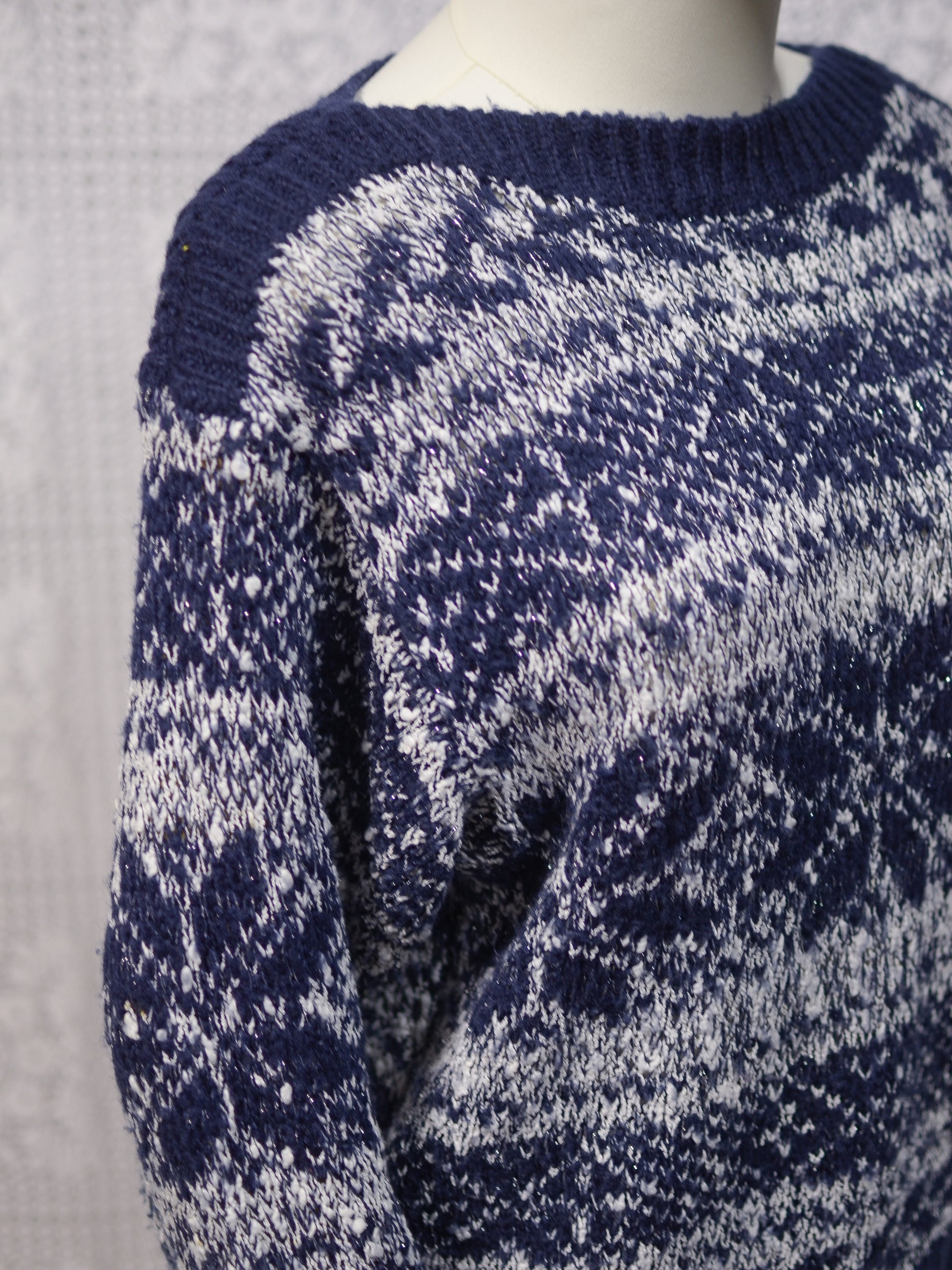 1980s C&A navy blue, white and silver snowflake festive jumper