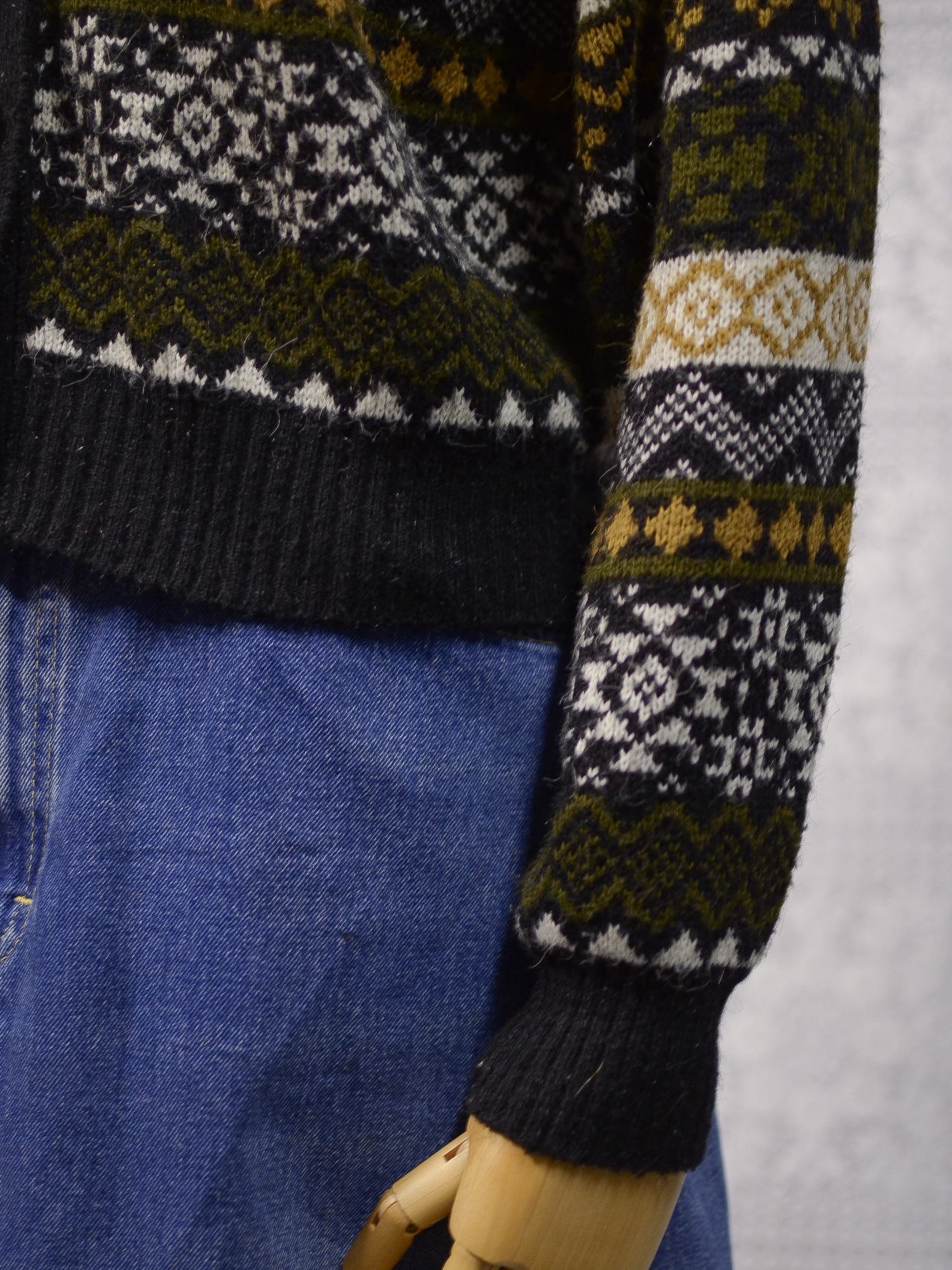 A stunning piece of knitwear from British vintage brand Yessica/C&A from the 1980s. It is a collared cardigan style which fastens with large gold-coloured metallic buttons, but could be worn buttoned up as a sweater.