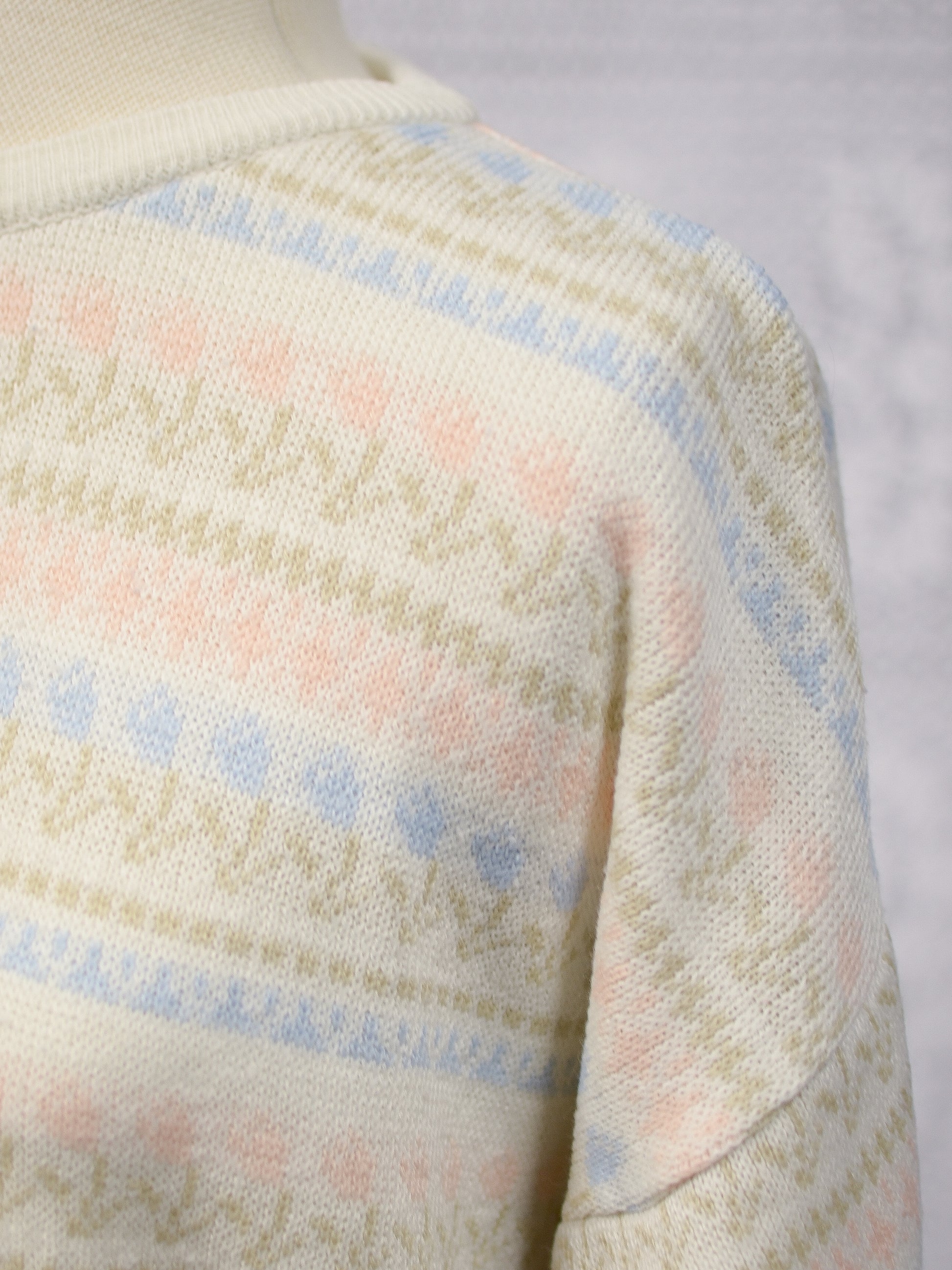 1980s Littlewoods cream, pink and blue tulip floral stripe jumper