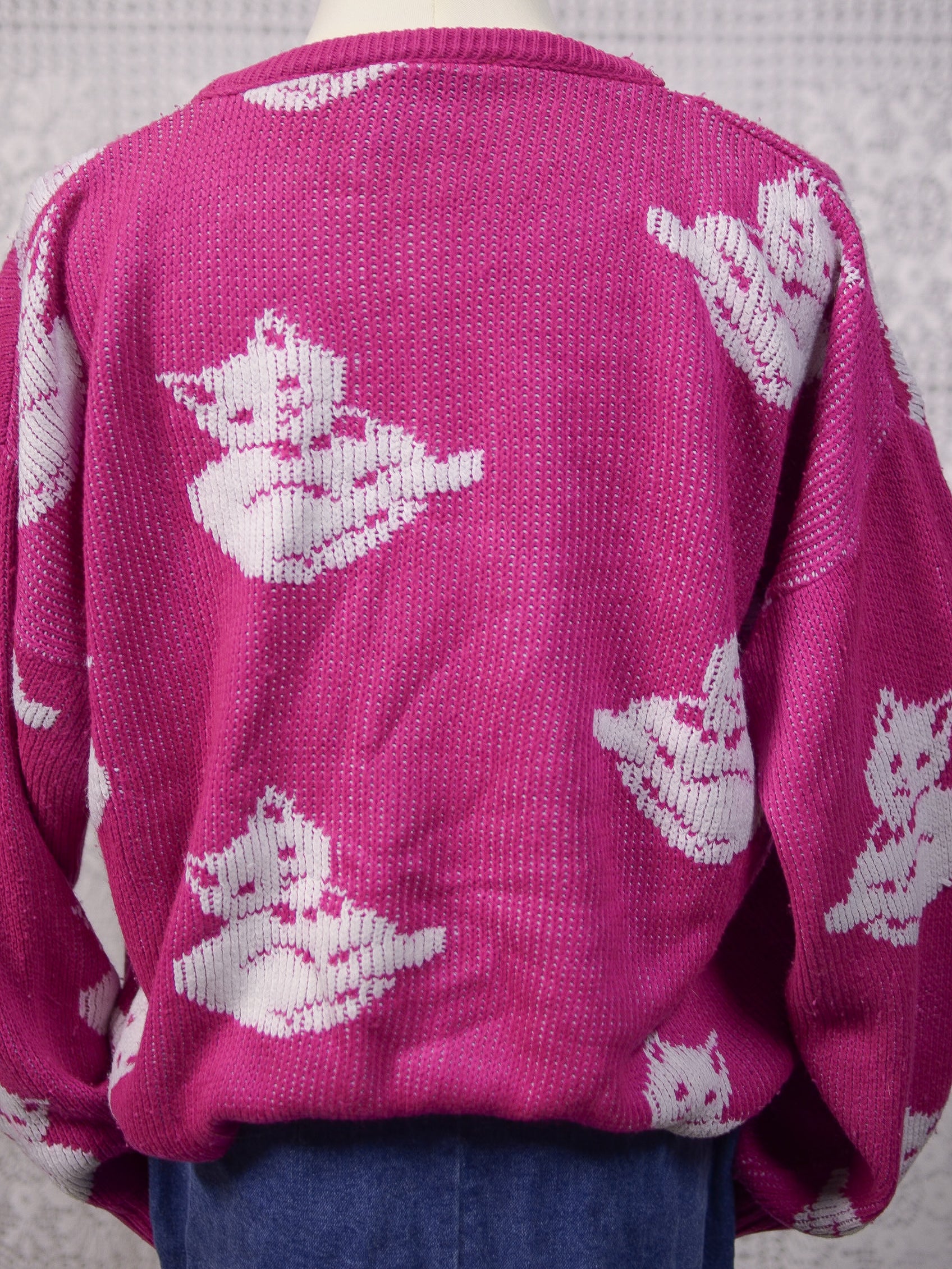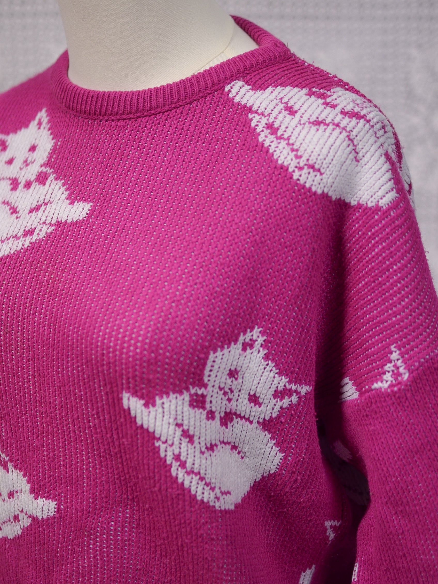 1980s pink and white cat jumper