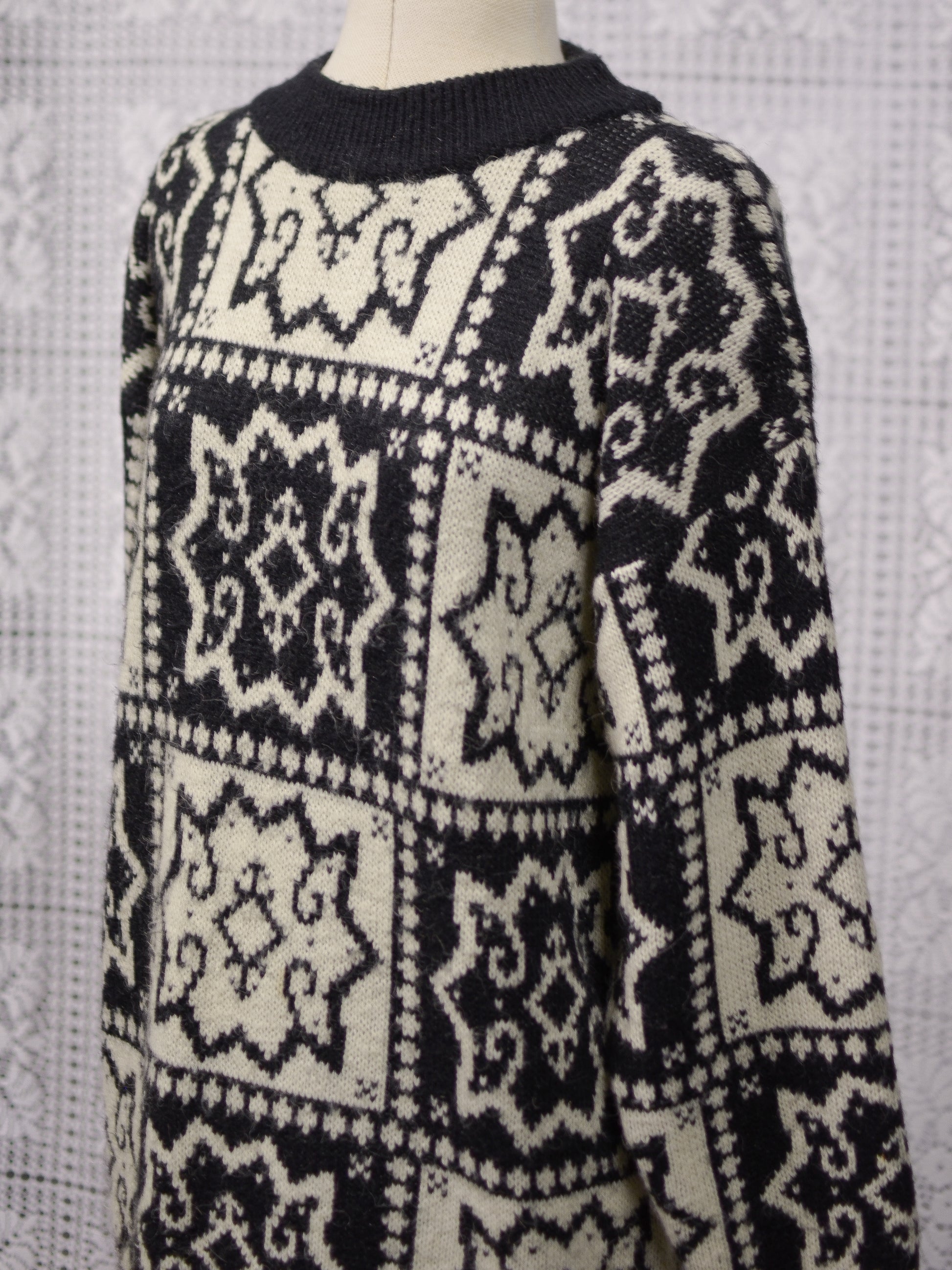 1990s black and white patterned long jumper