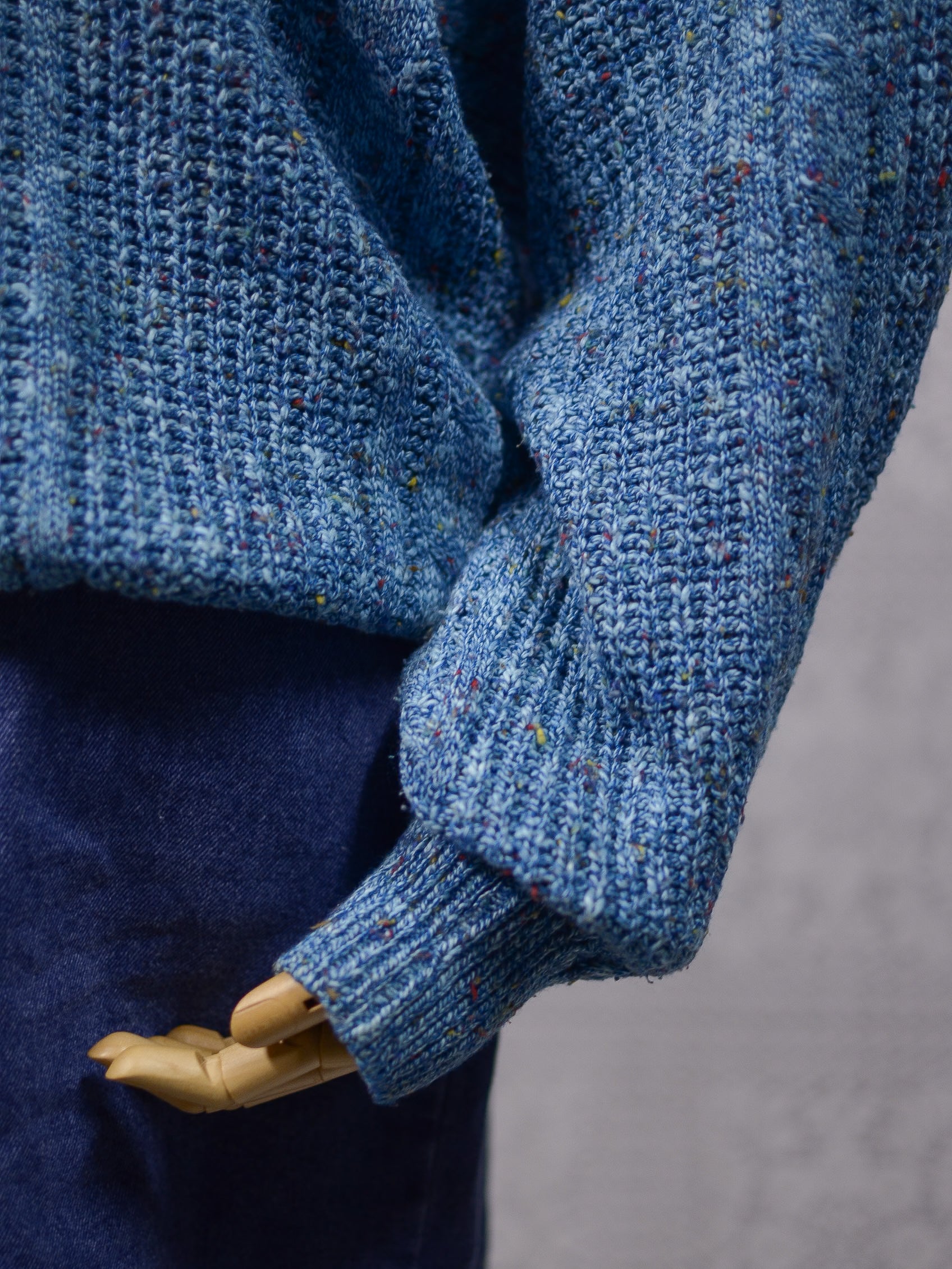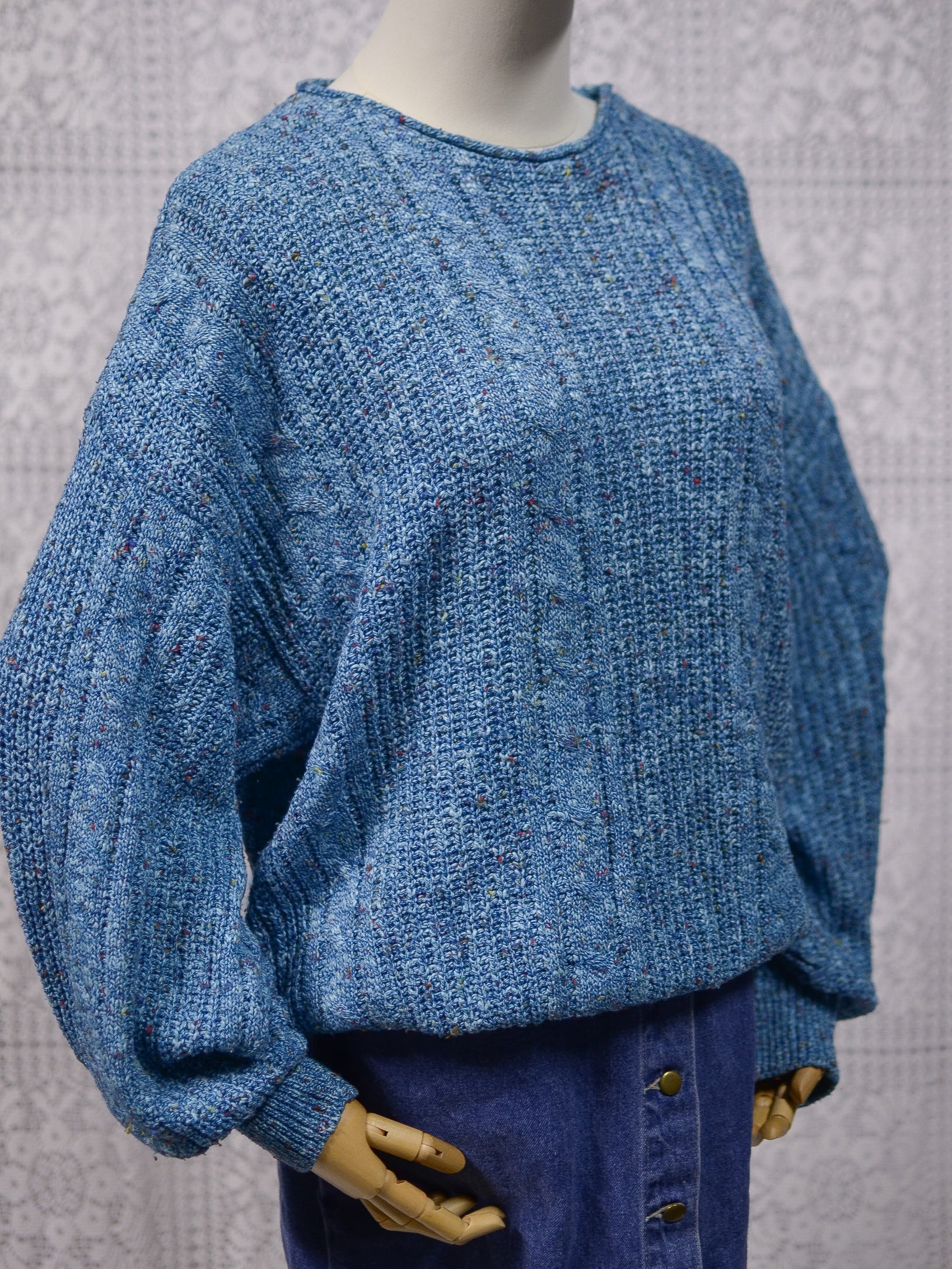 1990s blue and multicolour cotton blend cable knit slouchy jumper