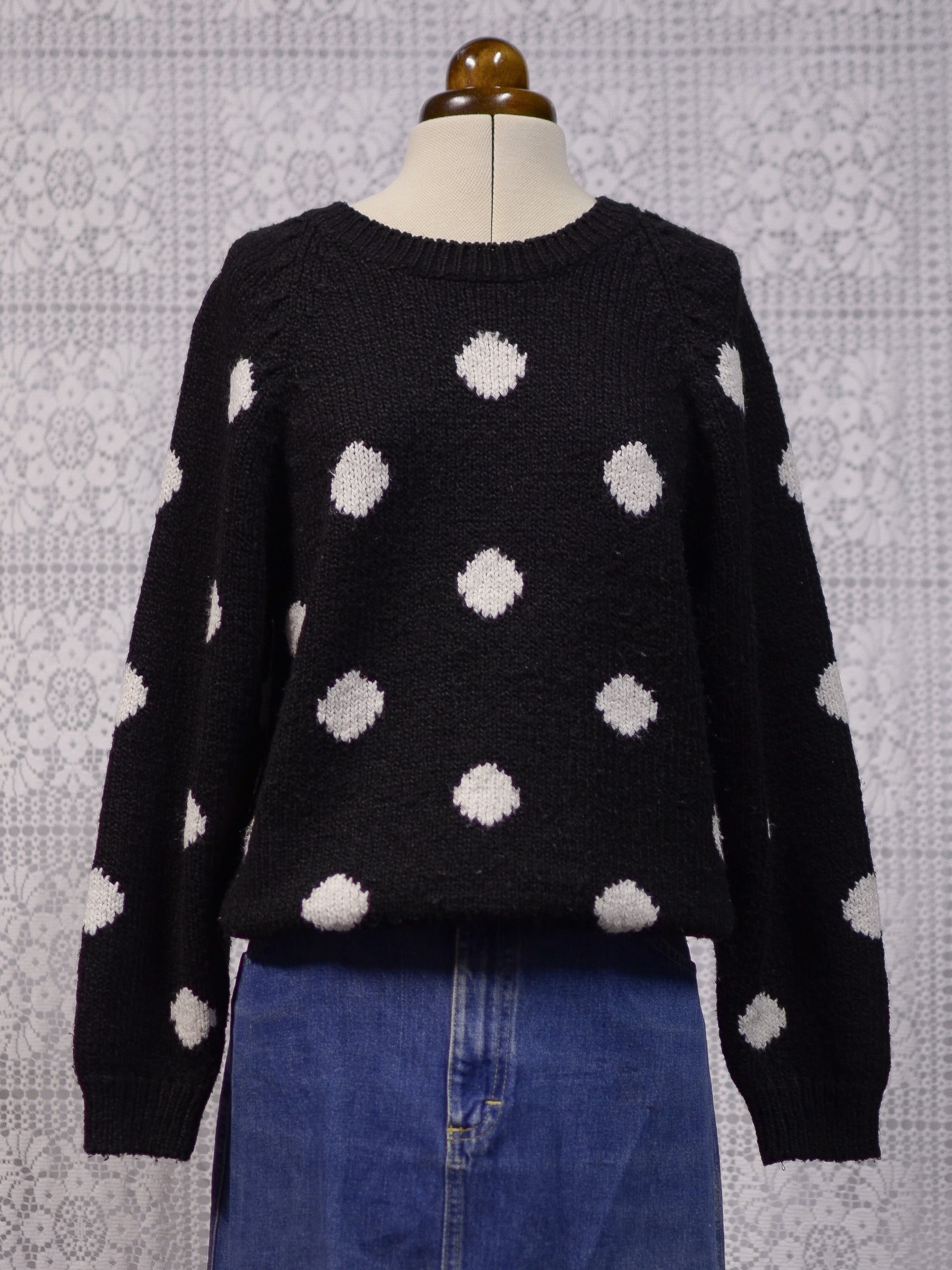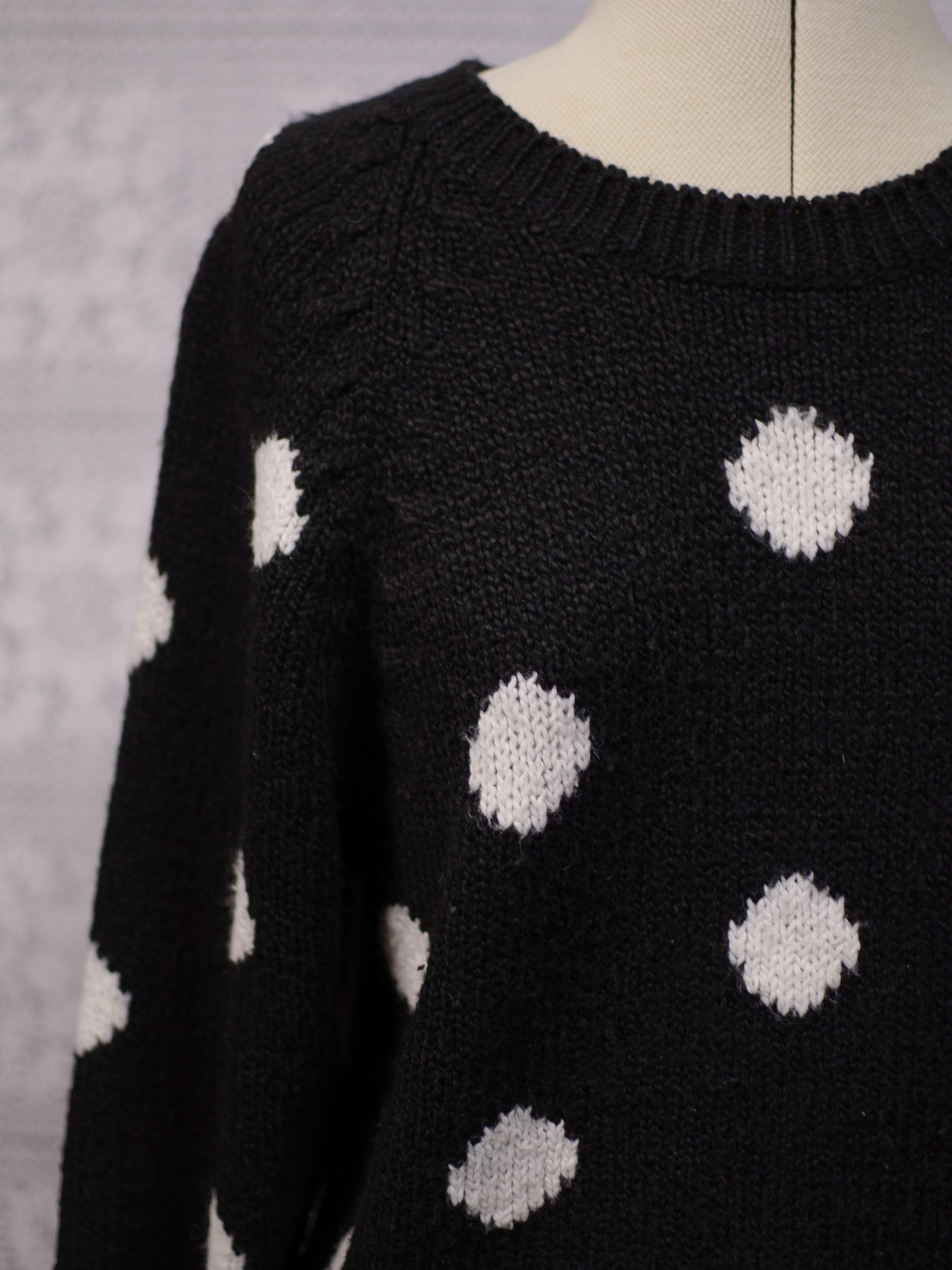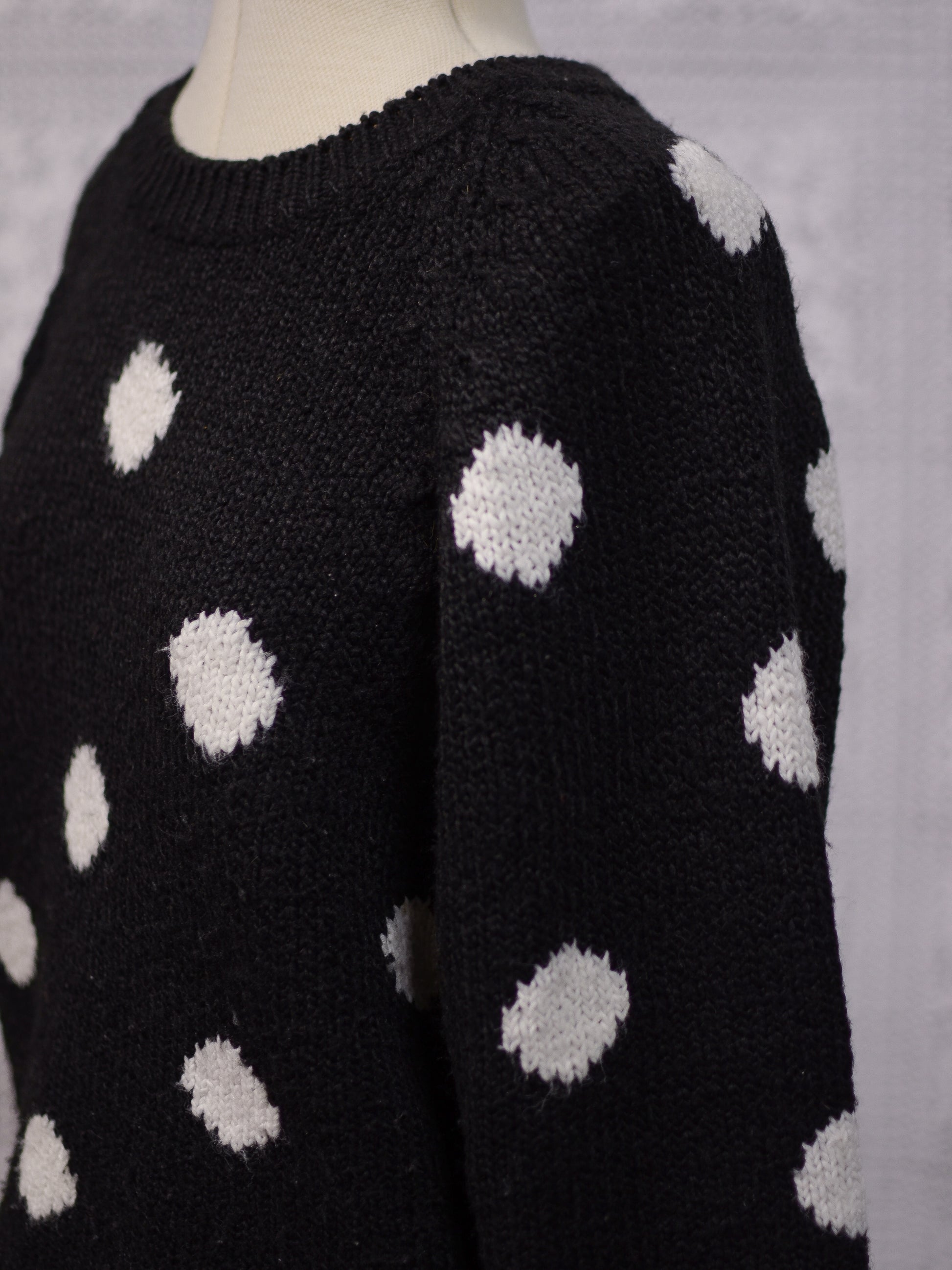 1990s Littlewoods black and white polkadot soft slouchy raglan jumper
