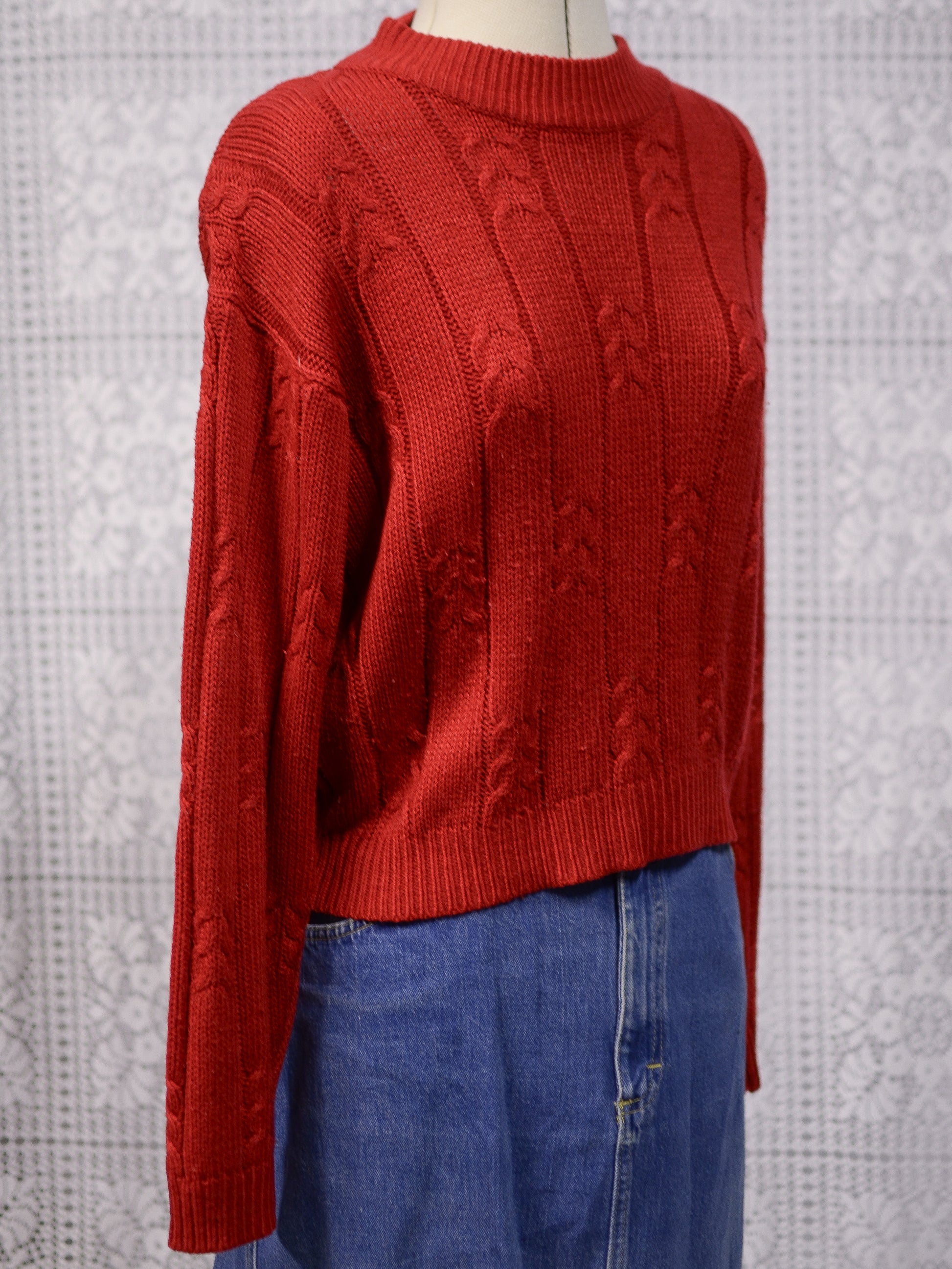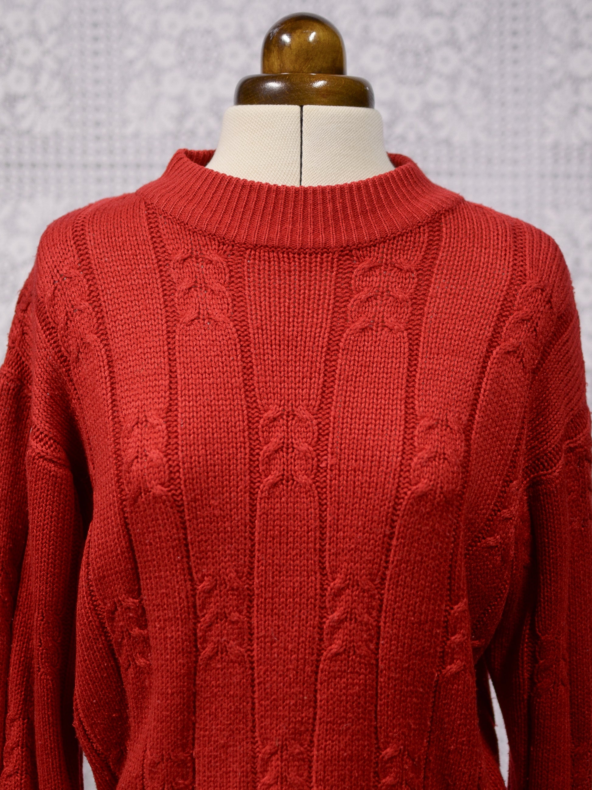 A simple, classic red ribbed cable knit jumper from vintage British high street brand Richards. Soft and cosy, perfect for winter and the festive season.