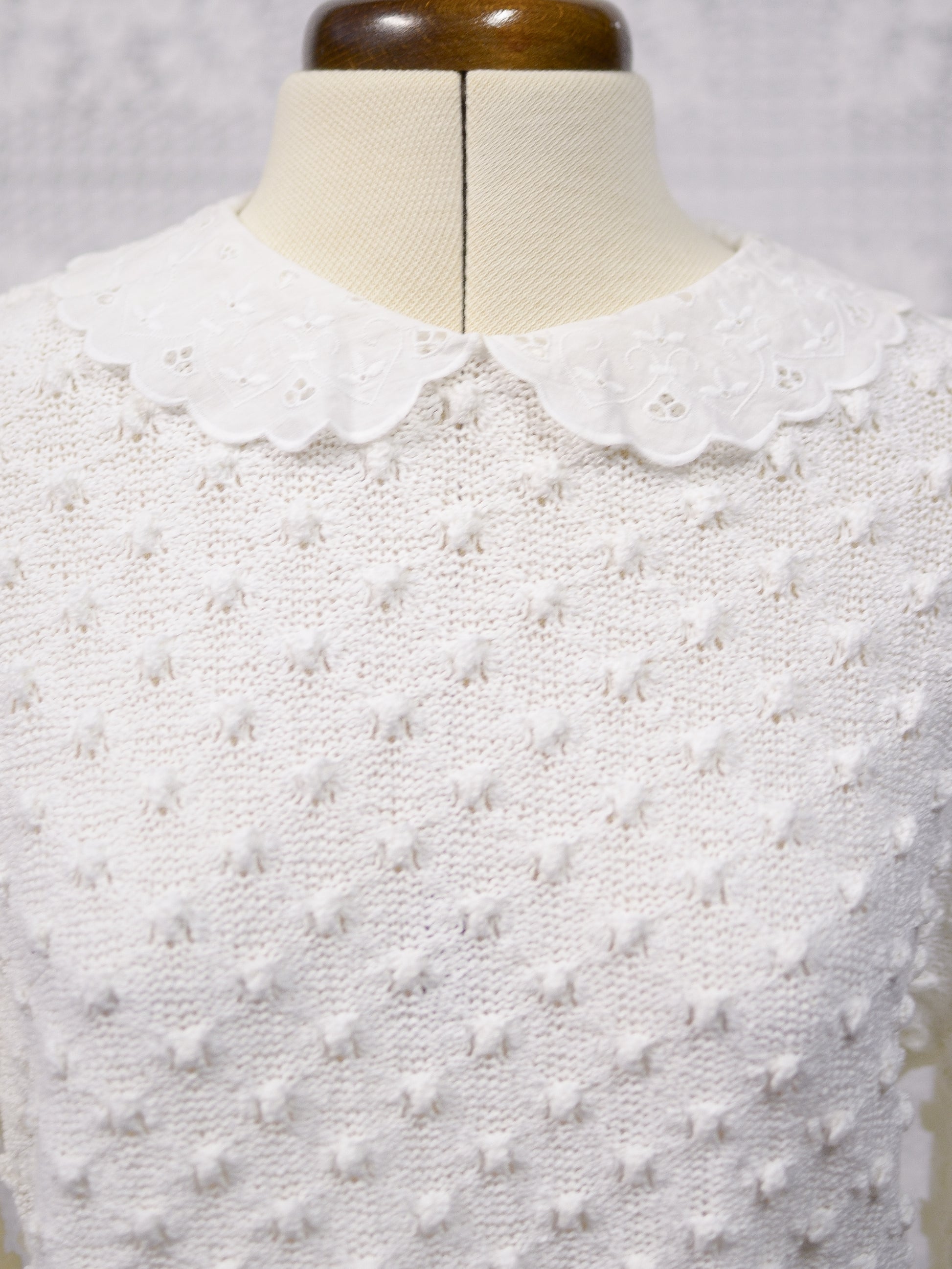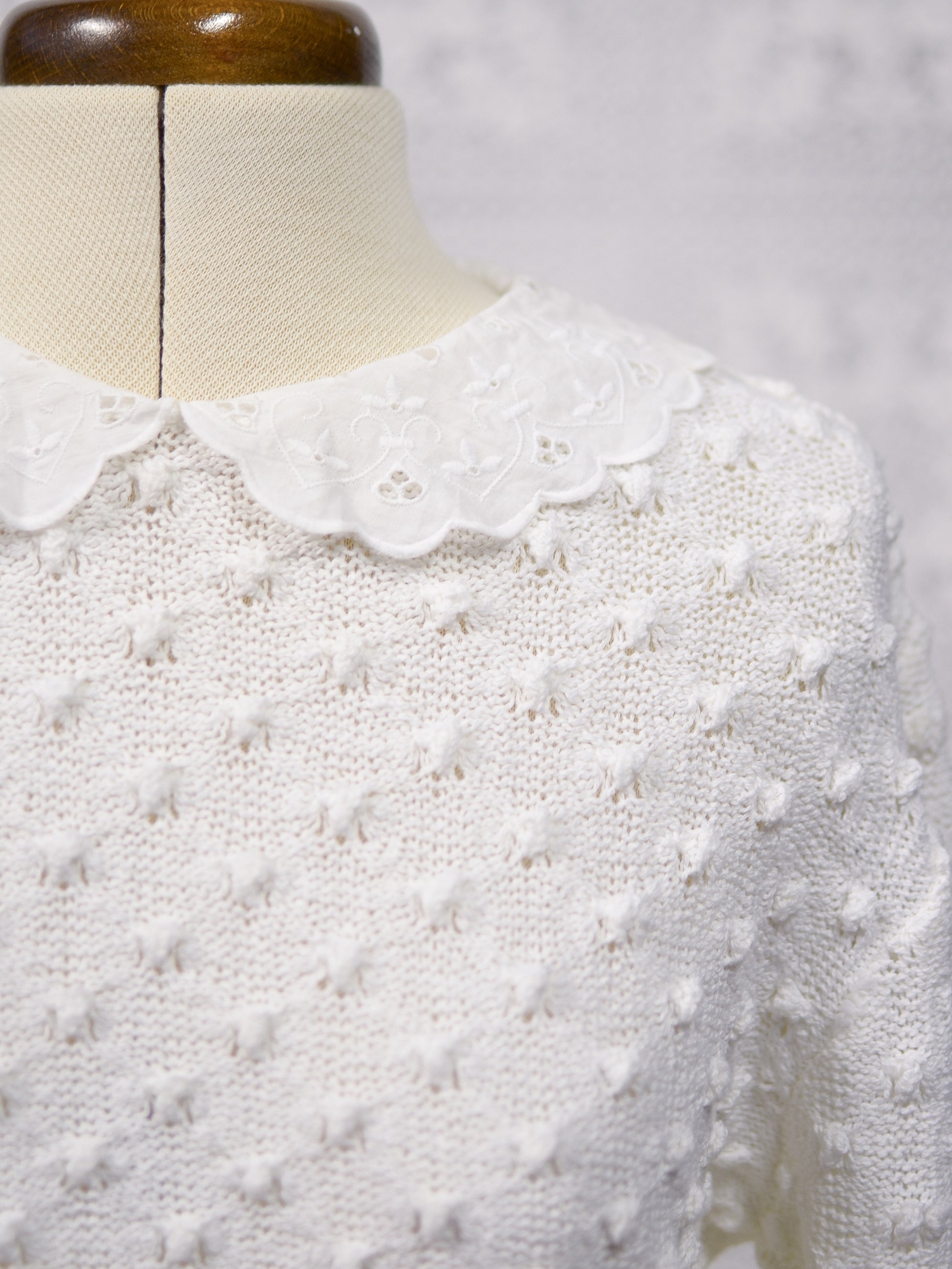 1990s St Michael white broderie anglaise collar textured knit jumper