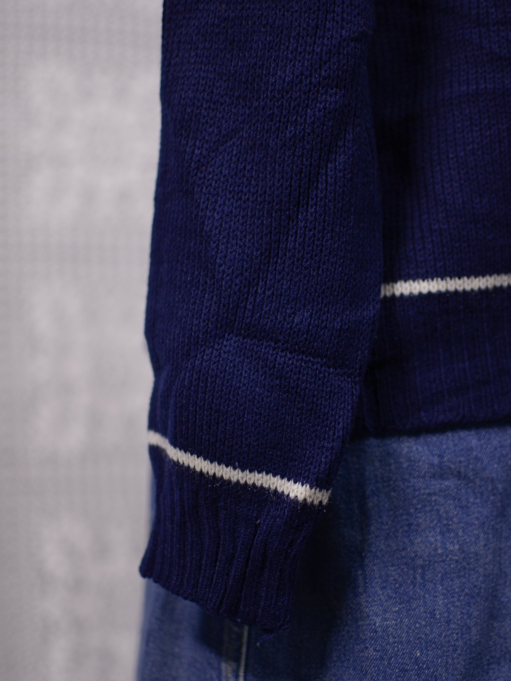1970s JC Penney navy blue, white and red snowflake ski jumper